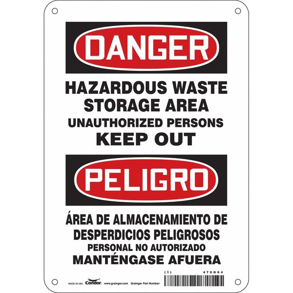 SKU G5776589Categories SafetyDescription Safety Sign, Horizontal Rectangle, Number of Printed Sides 1, English, Spanish, Sign Format Traditional OSHA, Sign Legend Hazardous Waste Storage Area Unauthorized Persons Keep Out/Area De Almacenamiento De Desperdicios Peligrosos Personal No Autorizado Mantengase Afuera, Sign Legend Background Color White, Sign Legend Style TextgraingerSKU: 470G64, mscSKU: , zoro_no: G5776589, mongo_id: 65bbea5222d7a989a99a8824