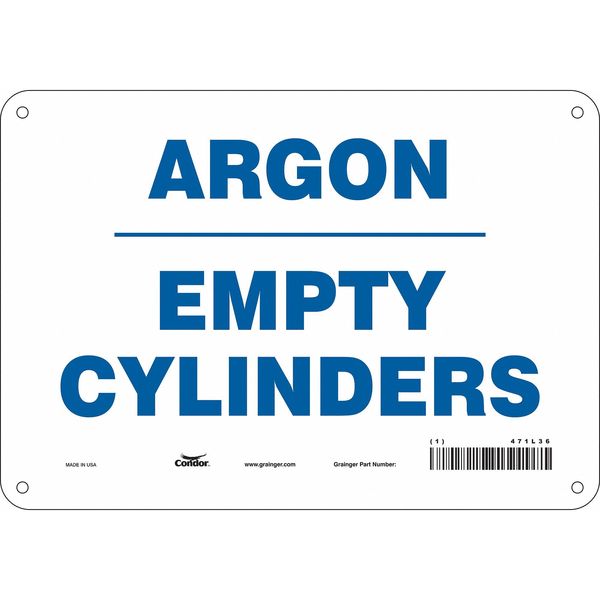 Safety Sign, 7 in Height, 10 in Width, Aluminum, Vertical Rectangle, English, 471L36SKU G5357587Categories SafetyDescription Safety Sign, Vertical Rectangle, Number of Printed Sides 1, English, Sign Format Other Format, Sign Legend Argon Empty Cylinders, Sign Legend Background Color White, Sign Legend Style TextgraingerSKU: 471L36, mscSKU: , zoro_no: G5357587, mongo_id: 65bbea5222d7a989a99a878e