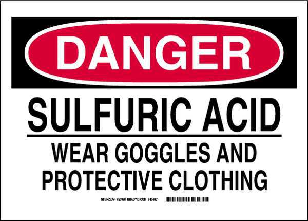 SKU G7398787Categories SafetyDescription Safety Sign, Sign Subject Matter Personal Protection, Height 10 in, Width 14 in, Sign Material Aluminum, Sign Mounting Style With Mounting Holes, Header Danger, Legend Sulfuric Acid Wear Goggles And Protective Clothing, Printed Language English, Sign Shape Rectangle$32.11 / eachWeb priceChemical/Hazardous Materials Sign, Height: 10"SKU G7398787Categories SafetyDescription Safety Sign, Sign Subject Matter Personal Protection, Height 10 in, Width 14 in, Sign Material Aluminum, Sign Mounting Style With Mounting Holes, Header Danger, Legend Sulfuric Acid Wear Goggles And Protective Clothing, Printed Language English, Sign Shape Rectangle$32.11 / eachWeb price -