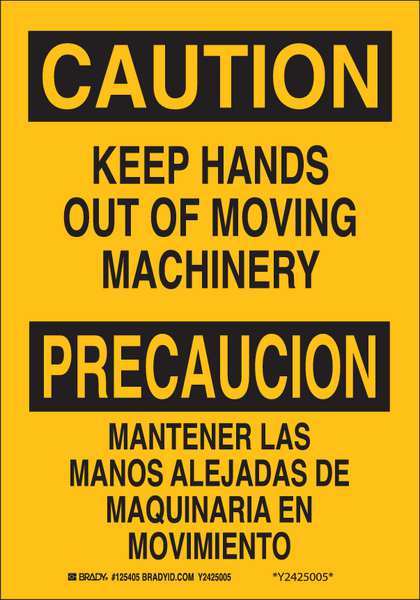 SKU G7366340Categories SafetyDescription Safety Sign, Sign Subject Matter Keep Hands Clear, Height 10 in, Width 7 in, Sign Material Polyester, Header Caution/Precaucion, Legend Keep Hands Out Of Moving Machinery/Mantener Las Ma, Printed Language English, Spanish, Sign Shape Rectangle$11.49 / eachWeb priceSafety Sign, 10 in Height, 7 in Width, Polyester, Rectangle, English, SpanishSKU G7366340Categories SafetyDescription Safety Sign, Sign Subject Matter Keep Hands Clear, Height 10 in, Width 7 in, Sign Material Polyester, Header Caution/Precaucion, Legend Keep Hands Out Of Moving Machinery/Mantener Las Ma, Printed Language English, Spanish, Sign Shape Rectangle$11.49 / eachWeb price -
