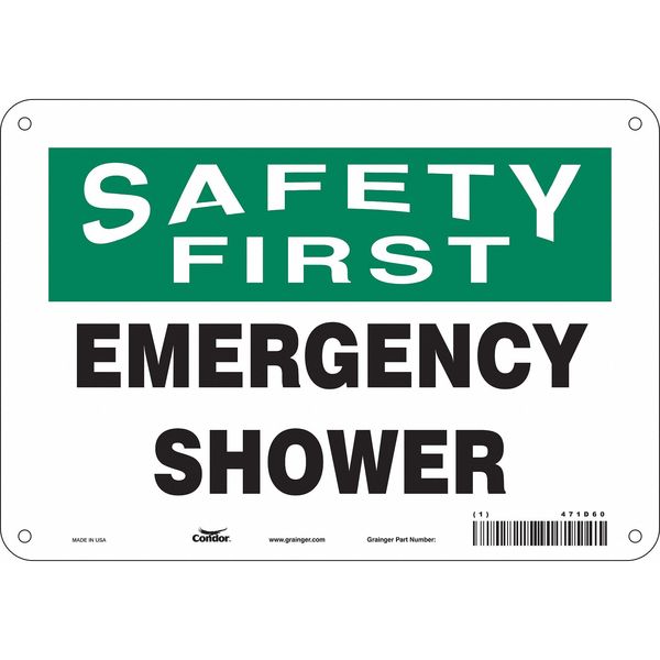 $18.74 / eachWeb priceSafety Sign, 7 in Height, 10 in Width, Aluminum, Vertical Rectangle, English, 471D60SKU G5359063Categories SafetyDescription Safety Sign, Vertical Rectangle, Number of Printed Sides 1, English, Sign Legend Emergency Shower, Sign Legend Background Color White, Sign Legend Style TextgraingerSKU: 471D60, mscSKU: , zoro_no: G5359063, mongo_id: 65bbe83422d7a989a98df95d