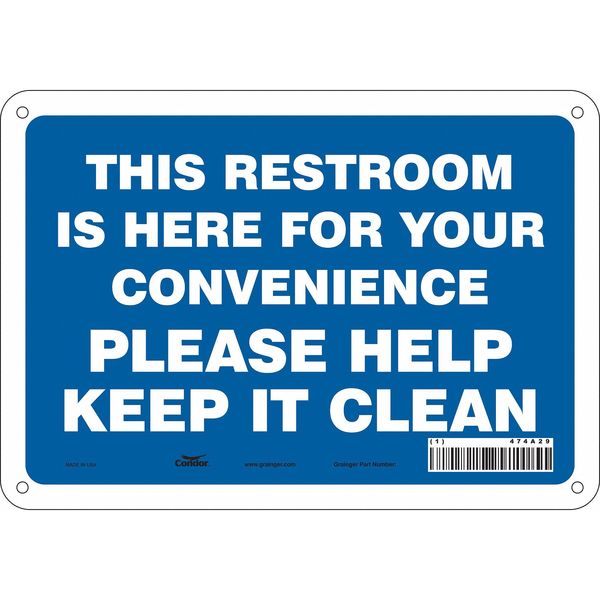 Restroom Sign, 10" W, 7" H, 0.032" Thick, 474A29SKU G5618459Categories SafetyDescription Restroom Sign, Vertical Rectangle, Number of Printed Sides 1, English, Sign Legend This Restroom Is Here For Your Convenience Please Help Keep It Clean, Sign Legend Background Color Blue, White, Sign Legend Style TextgraingerSKU: 474A29, mscSKU: , zoro_no: G5618459, mongo_id: 65bbea5222d7a989a99a86f2