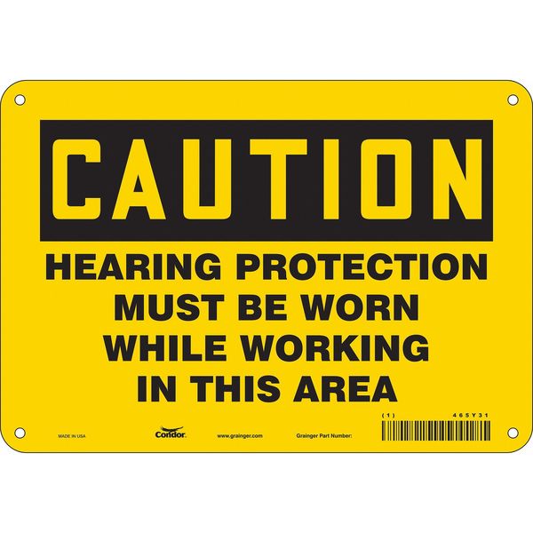 Safety Sign, 7 in Height, 10 in Width, Aluminum, Vertical Rectangle, English, 465Y31SKU G5898011Categories SafetyDescription Safety Sign, Vertical Rectangle, Number of Printed Sides 1, English, Sign Format Traditional OSHA, Sign Legend Hearing Protection Must Be Worn While Working In This Area, Sign Legend Background Color Yellow, Sign Legend Style TextgraingerSKU: 465Y31, mscSKU: , zoro_no: G5898011, mongo_id: 65bbea5222d7a989a99a8667