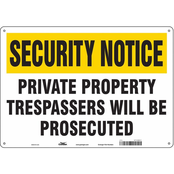 Safety Sign, 14 in H, 20 in W, Aluminum, Horizontal Rectangle, English, 473N01SKU G5578717Categories SafetyDescription Safety Sign, Horizontal Rectangle, Number of Printed Sides 1, English, Sign Format Other Format, Sign Legend Private Property Trespassers Will Be Prosecuted, Sign Legend Background Color White, Yellow, Sign Legend Style TextgraingerSKU: 473N01, mscSKU: , zoro_no: G5578717, mongo_id: 65bbea5222d7a989a99a86c4