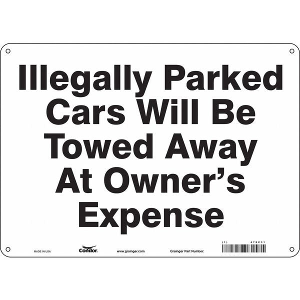 SKU G5893872Categories SafetyDescription Illegal & Unauthorized Vehicles Will Be Towed Parking Sign, Height 10 in, Width 14 in, Sign Material Aluminum, Sign Mounting Style Mounting Holes, Printed Language English, Sign Shape Horizontal RectanglegraingerSKU: 478C31, mscSKU: , zoro_no: G5893872, mongo_id: 65bbea5222d7a989a99a871a