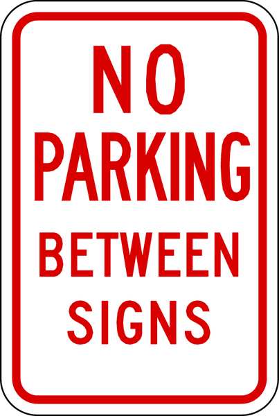 No Parking Between Parking Sign, 18"x12, LR7-14-12HA