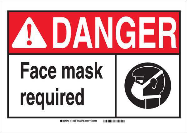 Danger Sign, 7"HX10"W, Aluminum, Legend: Face Mask Required