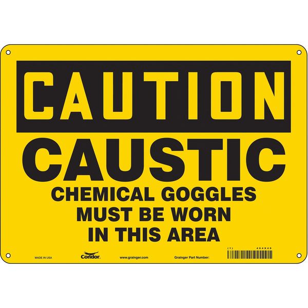 SKU G5790893Categories SafetyDescription Safety Sign, Horizontal Rectangle, Number of Printed Sides 1, English, Sign Format Traditional OSHA, Sign Legend Caustic Chemical Goggles Must Be Worn In This Area, Sign Legend Background Color Yellow, Sign Legend Style TextgraingerSKU: 464X40, mscSKU: , zoro_no: G5790893, mongo_id: 65bbe83422d7a989a98df9f9