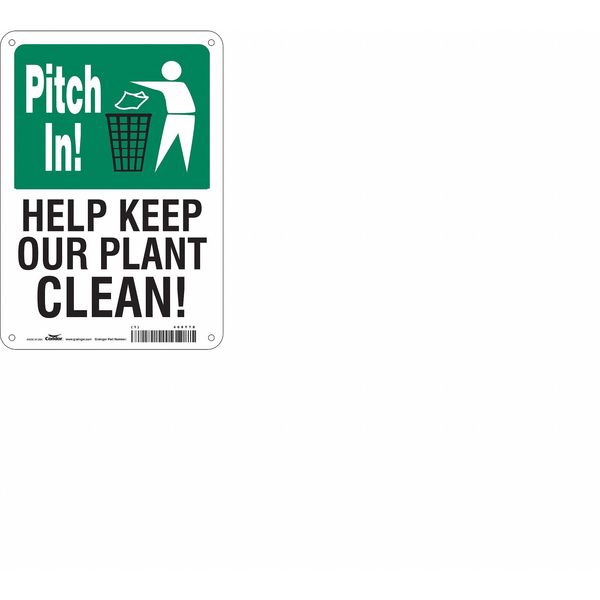 $14.74 / eachWeb priceSafety Sign, 10 in Height, 7 in Width, Aluminum, Horizontal Rectangle, English, 468Y78SKU G5295269Categories SafetyDescription Safety Sign, Horizontal Rectangle, Number of Printed Sides 1, English, Sign Format Other Format, Sign Legend Pitch In! Help Keep Our Plant Clean!, Sign Legend Background Color Green, White, Sign Legend Style Symbol and TextgraingerSKU: 468Y78, mscSKU: , zoro_no: G5295269, mongo_id: 65bbe83422d7a989a98dfa3b