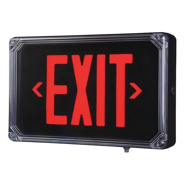 Exit Sign, Dbl Face, Red Letters, Blk Hsng