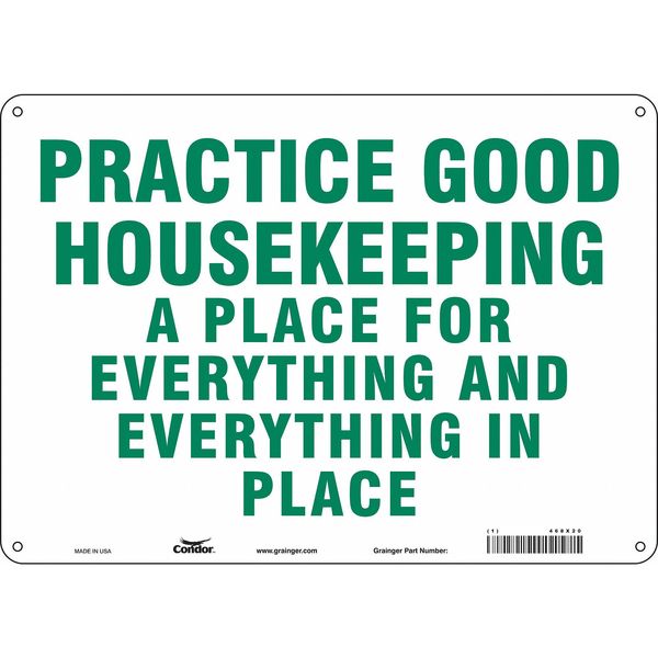 SKU G5239348Categories SafetyDescription Safety Sign, Horizontal Rectangle, Number of Printed Sides 1, English, Sign Legend Practice Good Housekeeping A Place For Everything And Everything In Place, Sign Legend Background Color White, Sign Legend Style TextgraingerSKU: 468X20, mscSKU: , zoro_no: G5239348, mongo_id: 65bbe83422d7a989a98df9b1