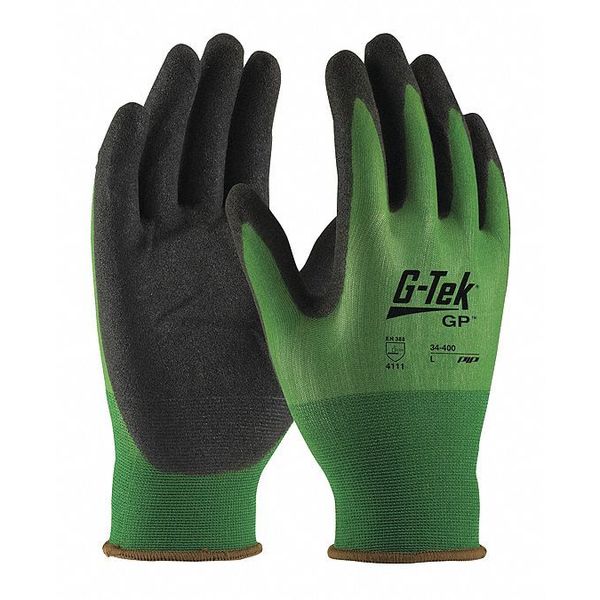 Nitrile Coated Gloves, Palm Coverage, Black/Green, XL, 12PK