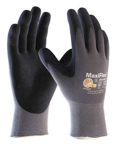 Foam Nitrile Coated Gloves, Palm Coverage, Gray, L, PR