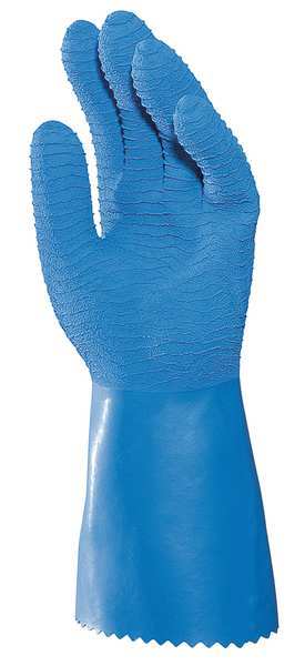 SKU G1571147Categories SafetyDescription Chemical Resistant Gloves, Natural Rubber Latex, 12 1/2 in, Cuff Scallop, Lining Knit, Glove Size 9, Color Blue, Standards Compliance with CFR 21 177.2600, EN 388 4131, Resists Liquids, 1 Pair$6.44 / eachWeb price