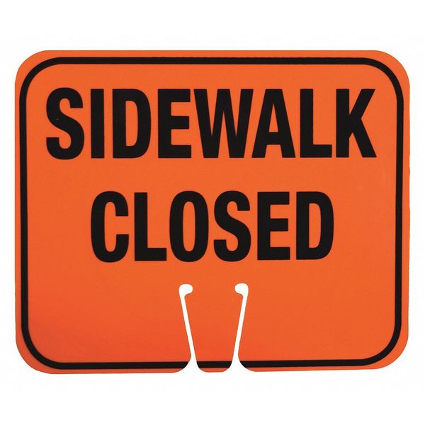 SKU G1617391Categories SafetyDescription Traffic Cone Sign, Product Type Traffic Cone Sign, Legend Sidewalk Closed, Material Plastic, Height 10 1/2 in, Width 12 3/4 in, For Use With Product Type Traffic Cones, Weight 1 lb, Color Orange/Black, For Cone Opening 1 39/100 in, Thickness 0.125 in$11.13 / eachWeb price