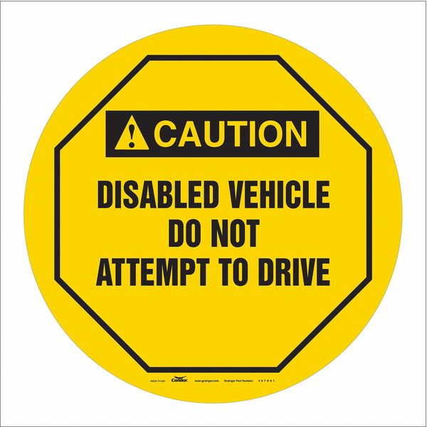 SKU G6567467Categories SafetyDescription Traffic Sign, Cover Color Yellow, Cover Material Vinyl, Hole Diameter 3/8 in, Lockable Yes, Outside Diameter 16 in, Header Caution, Legend Disabled Vehicle Do Not Attempt to Drive, Maximum Number of Padlocks 1, Header Background Color Black, Standards ANSI Z535, OSHA 29 CFR 1910.145, Thickness 0.026 ingraingerSKU: 487D61, mscSKU: , zoro_no: G6567467, mongo_id: 65bbea0a22d7a989a99914a9