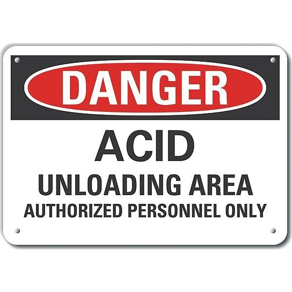 SKU G9497120Categories SafetyDescription Plastic Acid Danger Sign, Vertical Rectangle, Number of Printed Sides 1, English, Sign Format Traditional OSHA, Sign Legend Acid Unloading Area Authorized Personnel Only, Sign Legend Background Color White, Sign Legend Style TextgraingerSKU: 64RT19, mscSKU: , zoro_no: G9497120, mongo_id: 65bbe9d322d7a989a997d3dc
