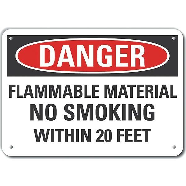 SKU G9497181Categories SafetyDescription Plastic Flammable Material Danger Sign, Horizontal Rectangle, Number of Printed Sides 1, English, Sign Format Traditional OSHA, Sign Legend Flammable Material No Smoking Within 20 Feet, Sign Legend Background Color White, Sign Legend Style TextgraingerSKU: 64RT12, mscSKU: , zoro_no: G9497181, mongo_id: 65bbe9ad22d7a989a996ef6e