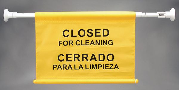 Door Barricade Sign, 14 in Height, 32 in to 52 in Width, Aluminum, Nylon, Horizontal RectangleSKU G6150356Categories SafetyDescription Door Barricade Sign, Horizontal Rectangle, Number of Printed Sides 1, English, Spanish, Sign Legend Closed for Cleaning/Cerrado Por Limpieza, Sign Legend Background Color Yellow, Sign Legend Style Text, Sign Legend Character Height 1 5/8 ingraingerSKU: 20WT67, mscSKU: , zoro_no: G6150356, mongo_id: 65bbe9fd22d7a989a998c02e