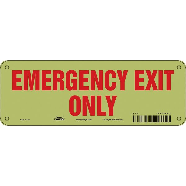 Safety Sign, 3 1/2 x 10 in, PolyethyleneSKU G5130951Categories SafetyDescription Safety Sign Emergency Exit, Vertical Rectangle, Number of Printed Sides 1, English, Sign Format Other Format, Sign Legend Emergency Exit Only, Sign Legend Background Color White, Sign Legend Style TextgraingerSKU: 467R43, mscSKU: , zoro_no: G5130951, mongo_id: 65bbe9fd22d7a989a998be0e