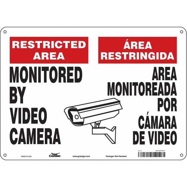 SKU G5101028Categories SafetyDescription Security Sign, Horizontal Rectangle, Number of Printed Sides 1, English, Spanish, Sign Legend Monitored By Video Camera/Area Monitoreada Por Camara De Video, Sign Legend Background Color Red, White, Sign Legend Style Symbol and TextgraingerSKU: 453P27, mscSKU: , zoro_no: G5101028, mongo_id: 65bbe9fd22d7a989a998be00