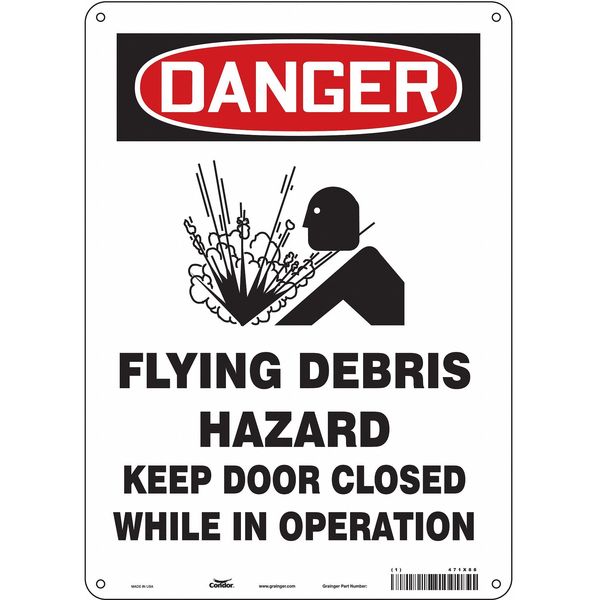 SKU G5811972Categories SafetyDescription Safety Sign, Vertical Rectangle, Number of Printed Sides 1, English, Sign Format Traditional OSHA, Sign Legend Flying Debris Hazard Keep Door Closed While In Operation, Sign Legend Background Color White, Sign Legend Style Symbol and TextgraingerSKU: 471X88, mscSKU: , zoro_no: G5811972, mongo_id: 65bbe9fd22d7a989a998bc2c