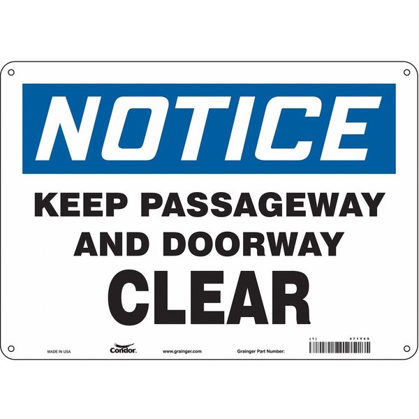 Safety Sign, 10 in Height, 14 in Width, Polyethylene, Horizontal Rectangle, English, 471Y49SKU G5376049Categories SafetyDescription Safety Sign, Horizontal Rectangle, Number of Printed Sides 1, English, Sign Format Traditional OSHA, Sign Legend Keep Passageway And Doorway Clear, Sign Legend Background Color White, Sign Legend Style TextgraingerSKU: 471Y49, mscSKU: , zoro_no: G5376049, mongo_id: 65bbe9fd22d7a989a998bdce