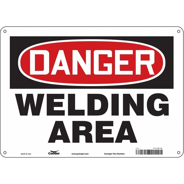 Safety Sign, 10 in Height, 14 in Width, Aluminum, Horizontal Rectangle, English, 473X46SKU G5072510Categories SafetyDescription Safety Sign, Horizontal Rectangle, Number of Printed Sides 1, English, Sign Format Traditional OSHA, Sign Legend Welding Area, Sign Legend Background Color White, Sign Legend Style TextgraingerSKU: 473X46, mscSKU: , zoro_no: G5072510, mongo_id: 65bbe9fd22d7a989a998bdf5