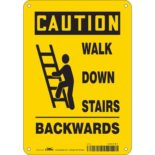 Safety Sign, 10 in Height, 7 in Width, Aluminum, Horizontal Rectangle, English, 485P87SKU G6266799Categories SafetyDescription Safety Sign, Horizontal Rectangle, Number of Printed Sides 1, English, Sign Format Traditional OSHA, Sign Legend Walk Down Stairs Backwards, Sign Legend Background Color Yellow, Sign Legend Style Symbol and TextgraingerSKU: 485P87, mscSKU: , zoro_no: G6266799, mongo_id: 65bbe9fd22d7a989a998bd04