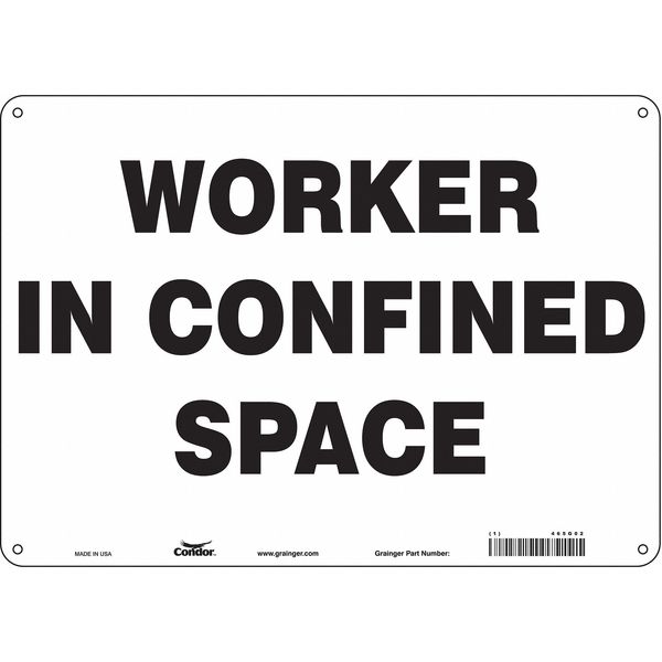 Safety Sign, 10 in Height, 14 in Width, Aluminum, Horizontal Rectangle, English, 465G02SKU G5868541Categories SafetyDescription Safety Sign, Horizontal Rectangle, Number of Printed Sides 1, English, Sign Format Other Format, Sign Legend Worker In Confined Space, Sign Legend Background Color White, Sign Legend Style TextgraingerSKU: 465G02, mscSKU: , zoro_no: G5868541, mongo_id: 65bbe9fd22d7a989a998bd94
