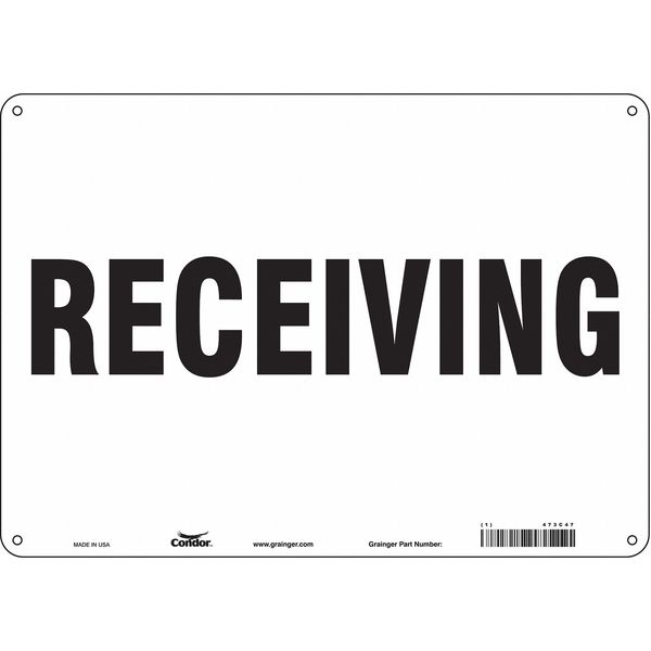 Safety Sign, 10 in Height, 14 in Width, Aluminum, Horizontal Rectangle, English, 473C47SKU G5555389Categories SafetyDescription Safety Sign, Horizontal Rectangle, Number of Printed Sides 1, English, Sign Format Other Format, Sign Legend Receiving, Sign Legend Background Color White, Sign Legend Style TextgraingerSKU: 473C47, mscSKU: , zoro_no: G5555389, mongo_id: 65bbe9fd22d7a989a998bc1e