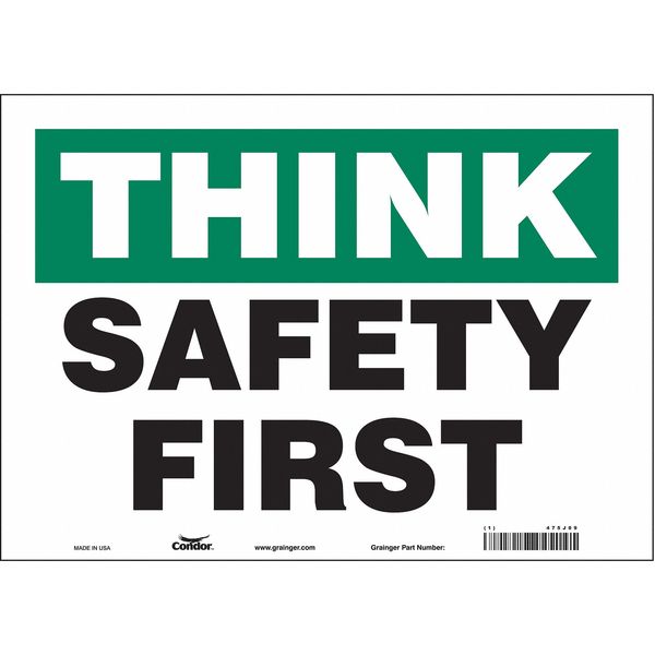 Safety Sign, 10 in Height, 14 in Width, Vinyl, Horizontal Rectangle, English, 475J09SKU G5125257Categories SafetyDescription Safety Sign, Horizontal Rectangle, Number of Printed Sides 1, English, Sign Format Other Format, Sign Legend Safety First, Sign Legend Background Color Green, White, Sign Legend Style TextgraingerSKU: 475J09, mscSKU: , zoro_no: G5125257, mongo_id: 65bbe9fd22d7a989a998bc7d