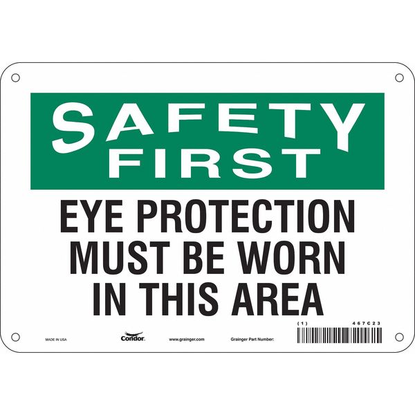 SKU G5226991Categories SafetyDescription Safety Sign, Vertical Rectangle, Number of Printed Sides 1, English, Sign Format Traditional OSHA, Sign Legend Eye Protection Must Be Worn In This Area, Sign Legend Background Color White, Sign Legend Style TextgraingerSKU: 467C23, mscSKU: , zoro_no: G5226991, mongo_id: 65bbe9fd22d7a989a998bd40