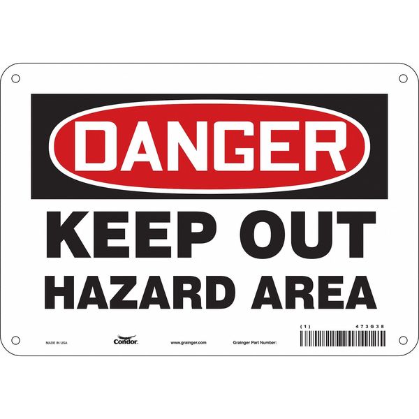 Safety Sign, 7 in Height, 10 in Width, Aluminum, Vertical Rectangle, English, 473G38SKU G5614959Categories SafetyDescription Safety Sign, Vertical Rectangle, Number of Printed Sides 1, English, Sign Format Traditional OSHA, Sign Legend Keep Out Hazard Area, Sign Legend Background Color White, Sign Legend Style TextgraingerSKU: 473G38, mscSKU: , zoro_no: G5614959, mongo_id: 65bbe9fd22d7a989a998bd6c