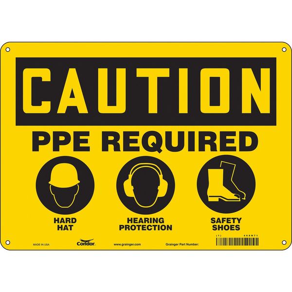 Safety Sign, 10 in Height, 14 in Width, Aluminum, Horizontal Rectangle, English, 468N71SKU G5622360Categories SafetyDescription Safety Sign, Horizontal Rectangle, Number of Printed Sides 1, English, Sign Format Traditional OSHA, Sign Legend Ppe Required Hard Hat Hearing Protection Safety Shoes, Sign Legend Background Color Yellow, Sign Legend Style Symbol and TextgraingerSKU: 468N71, mscSKU: , zoro_no: G5622360, mongo_id: 65bbe9d322d7a989a997d8b3