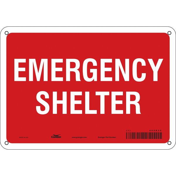 Safety Sign, 10" Wx7" H, 0.032" ThicknessSKU G5567578Categories SafetyDescription Safety Sign, Vertical Rectangle, Number of Printed Sides 1, English, Sign Format Other Format, Sign Legend Emergency Shelter, Sign Legend Background Color Red, Sign Legend Style TextgraingerSKU: 465R30, mscSKU: , zoro_no: G5567578, mongo_id: 65bbe9d322d7a989a997d837