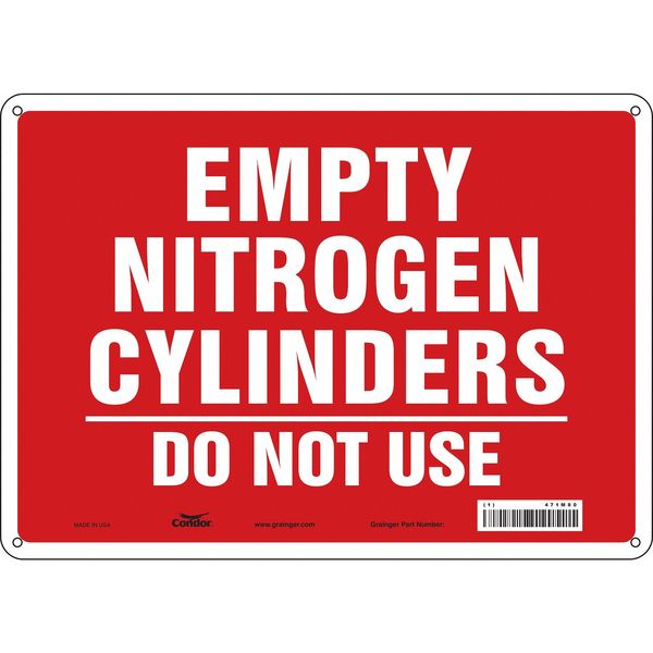 Safety Sign, 10 in Height, 14 in Width, Aluminum, Horizontal Rectangle, English, 471M80SKU G5059000Categories SafetyDescription Safety Sign, Horizontal Rectangle, Number of Printed Sides 1, English, Sign Format Other Format, Sign Legend Empty Nitrogen Cylinders Do Not Use, Sign Legend Background Color Red, Sign Legend Style TextgraingerSKU: 471M80, mscSKU: , zoro_no: G5059000, mongo_id: 65bbe9d322d7a989a997d6e4