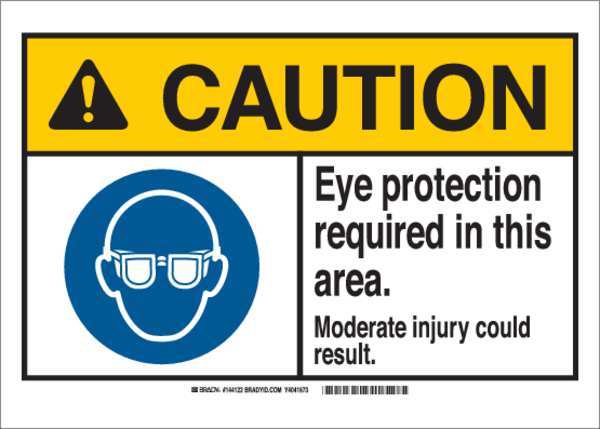 Caution Sign, 10"Hx14"W, Eye Prot Req
