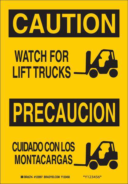SKU G7374628Categories SafetyDescription Caution Sign, Sign Subject Matter Lift Truck Traffic, Height 10 in, Width 7 in, Sign Material Fiberglass, Header Caution/Precaucion, Legend Watch For Lift Trucks/Cuidado Con Los Montacargas, Printed Language English, Spanish, Sign Shape Rectangle$32.86 / eachWeb priceCaution Sign, 10 in H, 7 in W, Fiberglass, Rectangle, English, Spanish, 122807SKU G7374628Categories SafetyDescription Caution Sign, Sign Subject Matter Lift Truck Traffic, Height 10 in, Width 7 in, Sign Material Fiberglass, Header Caution/Precaucion, Legend Watch For Lift Trucks/Cuidado Con Los Montacargas, Printed Language English, Spanish, Sign Shape Rectangle$32.86 / eachWeb price -