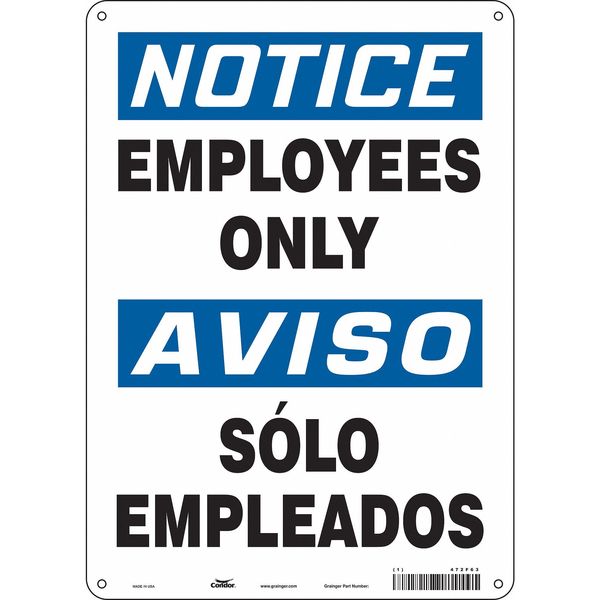 SKU G5059612Categories SafetyDescription Safety Sign, Vertical Rectangle, Number of Printed Sides 1, English, Spanish, Sign Format Traditional OSHA, Sign Legend Employees Only/Solo Empleados, Sign Legend Background Color White, Sign Legend Style TextgraingerSKU: 472F63, mscSKU: , zoro_no: G5059612, mongo_id: 65bbe83422d7a989a98df91f
