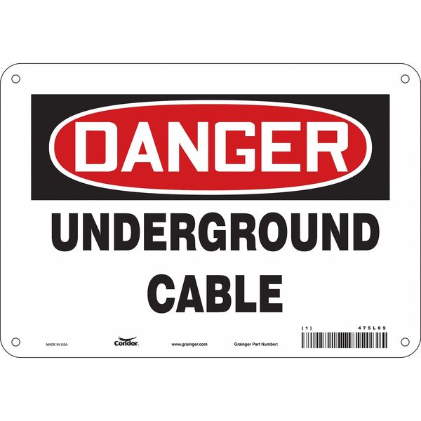 Safety Sign, 7 in Height, 10 in Width, Aluminum, Vertical Rectangle, English, 475L09SKU G5557513Categories SafetyDescription Safety Sign, Vertical Rectangle, Number of Printed Sides 1, English, Sign Format Traditional OSHA, Sign Legend Underground Cable, Sign Legend Background Color White, Sign Legend Style TextgraingerSKU: 475L09, mscSKU: , zoro_no: G5557513, mongo_id: 65bbe9d322d7a989a997d667