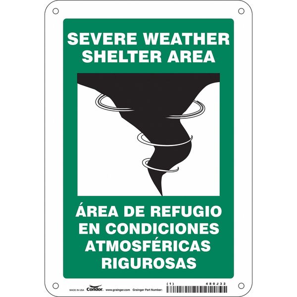 SKU G5804659Categories SafetyDescription Safety Sign, Horizontal Rectangle, Number of Printed Sides 1, English, Spanish, Sign Legend Severe Weather Shelter Area/Area De Refugio En Condiciones Atmosfericas Rigurosas, Sign Legend Background Color Green, Sign Legend Style Symbol and TextgraingerSKU: 480J32, mscSKU: , zoro_no: G5804659, mongo_id: 65bbe9d322d7a989a997d677