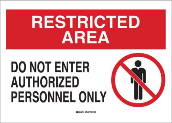Admittance Sign, 10 in H, 14 in W, Plastic, Rectangle, English, 95468SKU G7366331Categories SafetyDescription Admittance Sign, Sign Subject Matter Authorized Personnel and Restricted Access, Height 10 in, Width 14 in, Sign Material Plastic, Sign Mounting Style With Mounting Holes, Header Restricted Area, Legend Do Not Enter Authorized Personnel Only, Printed Language English, Sign Shape RectanglegraingerSKU: , mscSKU: , zoro_no: G7366331, mongo_id: 65bbe9d322d7a989a997d649