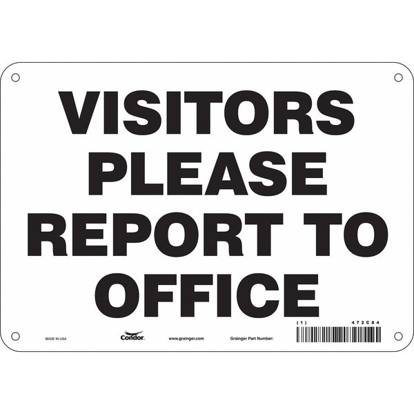 Safety Sign, 7 in Height, 10 in Width, Aluminum, Vertical Rectangle, English, 472C84SKU G5856580Categories SafetyDescription Safety Sign, Vertical Rectangle, Number of Printed Sides 1, English, Sign Format Other Format, Sign Legend Visitors Please Report To Office, Sign Legend Background Color White, Sign Legend Style TextgraingerSKU: 472C84, mscSKU: , zoro_no: G5856580, mongo_id: 65bbe9d322d7a989a997d78a