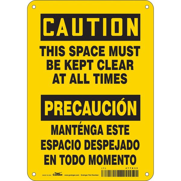 Safety Sign, 10 in Height, 7 in Width, Aluminum, Horizontal Rectangle, English, Spanish, 477K35SKU G5832272Categories SafetyDescription Safety Sign, Horizontal Rectangle, Number of Printed Sides 1, English, Spanish, Sign Format Traditional OSHA, Sign Legend This Space Must Be Kept Clear At All Times/Mantenga Este Espacio Despejado En Todo Momento, Sign Legend Background Color Yellow, Sign Legend Style TextgraingerSKU: 477K35, mscSKU: , zoro_no: G5832272, mongo_id: 65bbe9d322d7a989a997d65f
