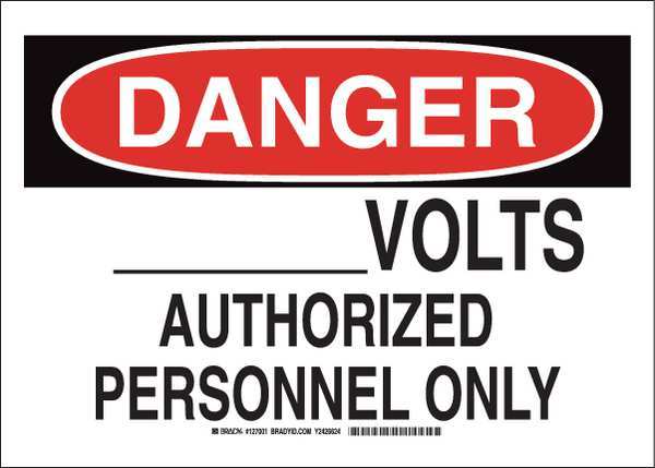 Danger Sign 10X14, Legend: ___ Volts Authorized Personnel Only