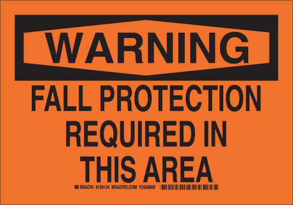 SKU G7424109Categories SafetyDescription Warning Sign, Sign Subject Matter Fall Protection, Height 10 in, Width 14 in, Sign Material Polyester, Sign Mounting Style Adhesive Surface, Header Warning, Legend Fall Protection Required In This Area, Printed Language English, Sign Shape Rectangle$29.99 / eachWeb priceWarning Sign, 10X14", Black/Orange, 129137SKU G7424109Categories SafetyDescription Warning Sign, Sign Subject Matter Fall Protection, Height 10 in, Width 14 in, Sign Material Polyester, Sign Mounting Style Adhesive Surface, Header Warning, Legend Fall Protection Required In This Area, Printed Language English, Sign Shape Rectangle$29.99 / eachWeb price -