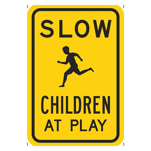 Children at Play Traffic Sign, 18 in Height, 24 in Width, Aluminum, Vertical Rectangle, English