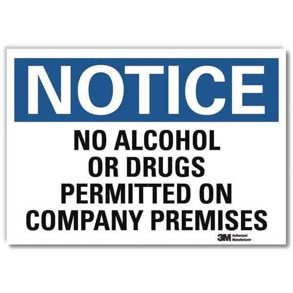 Notice Sign, 7 in H, 10 in W, Reflective Sheeting, Vertical Rectangle, English, U5-1338-RD_10X7SKU G2760409Categories SafetyDescription Notice Sign, Vertical Rectangle, Number of Printed Sides 1, English, Sign Format Traditional OSHA, Sign Legend No Alcohol Or Drugs Permitted On Company Premises, Sign Legend Background Color White, Sign Legend Style TextgraingerSKU: 34JR65, mscSKU: , zoro_no: G2760409, mongo_id: 65bbe9fd22d7a989a998b9db