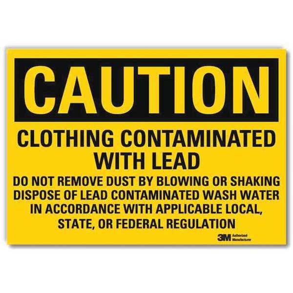 SKU G2725129Categories SafetyDescription Caution Sign, Horizontal Rectangle, Number of Printed Sides 1, English, Sign Format Traditional OSHA, Sign Legend Clothing Contaminated With Lead Do Not Remove Dust By Blowing Or Shaking Dispose Of Lead Contaminated Wash Water In Accordance With Applicable Local, State, Or Federal Regulation, Sign Legend Background Color Yellow, Sign Legend Style TextgraingerSKU: 35JK45, mscSKU: , zoro_no: G2725129, mongo_id: 65bbe9fd22d7a989a998b83d